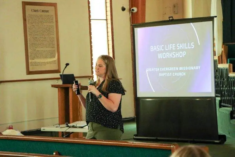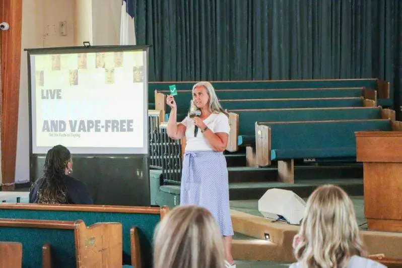 Invitaron a varios profesionales a compartir sus talentos y conocimientos durante un taller de habilidades básicas sobre temas como salud mental, peligros del vapeo, seguridad con extintores, RCP con solo manos, redacción de currículums y habilidades para entrevistas, seguridad, acoso escolar y becas/FAFSA.