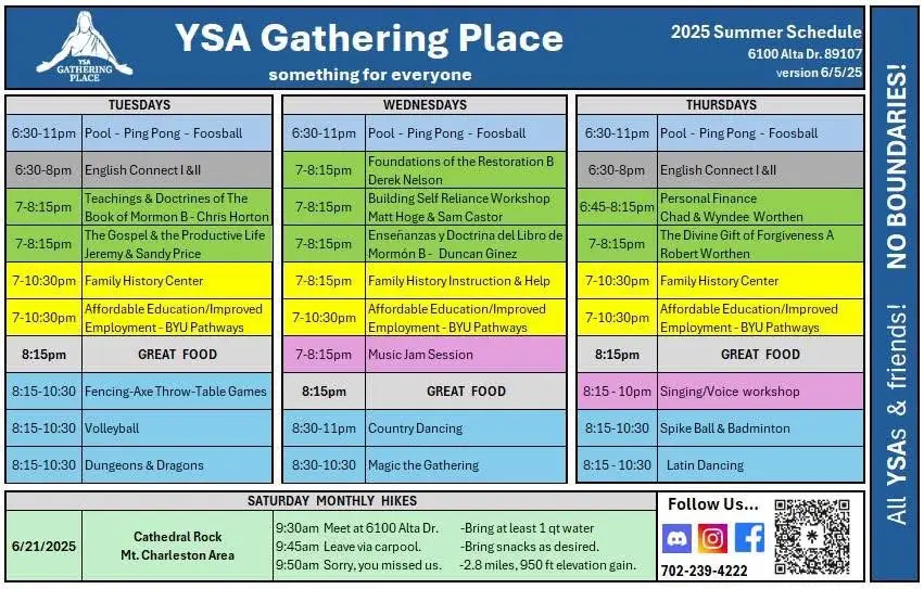 All young single adults ages 18-35 are invited to the Las Vegas YSA Gathering Place!