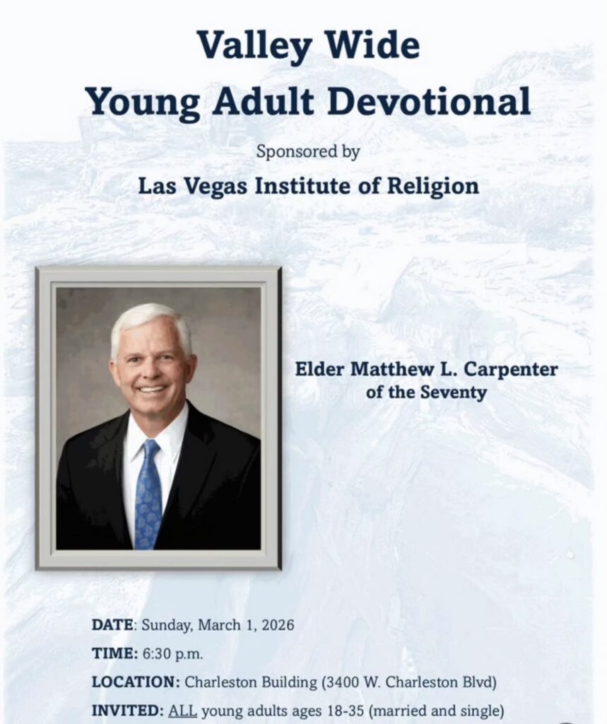 Elder Matthew L Carpenter, of the Seventy, will speak to all young adults ages 18-35, married and single, in this valley wide devotional.