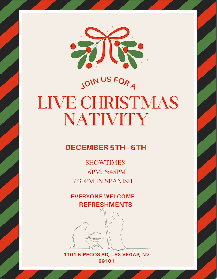 A live Nativity celebrating the birth of our Savior Jesus Christ. Everyone is welcome and refreshments will be served.